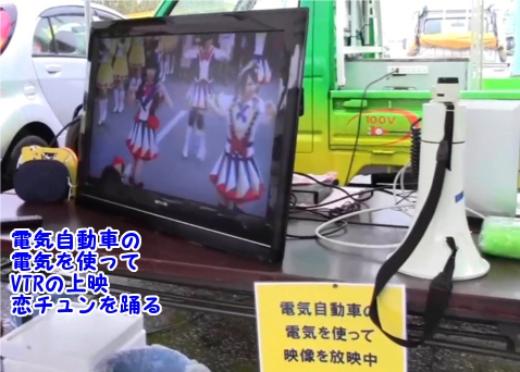 20131104あがのわくわく産業フェア改造電気自動車の電源で「恋チュン」を踊りました。